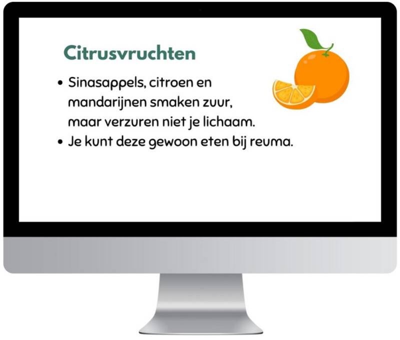 Veel mensen denken dat ze al gezond eten, omdat ze bijvoorbeeld twee ons groenten per dag eten of weinig vlees. Maar vergis je niet: er komt meer bij kijken om reuma te verslaan. De cursus zit vol met tips en tricks over welke specifieke voeding je beter kunt vermijden, wat je met mate kan eten en wat je in overvloed nodig hebt.